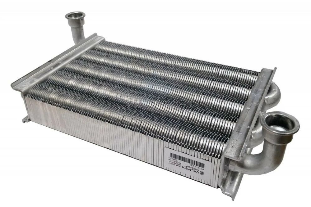 Теплообменник в котле передает тепло от горелки к теплоносителю системы отопления. В штатном режиме нагрев происходит равномерно, а избыточное тепло сразу отводится циркулирующей водой. Температура металла остается в пределах заводских параметров.
