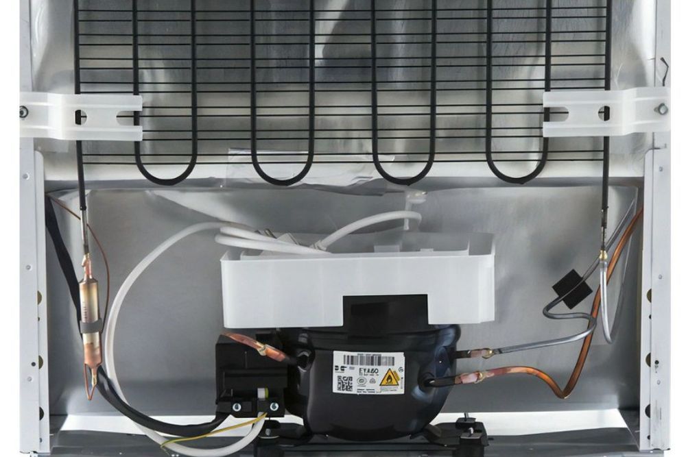 Такая система состоит из нескольких элементов, расположенных в морозильной камере на задней стенке за металлической пластиной. Она включает:
