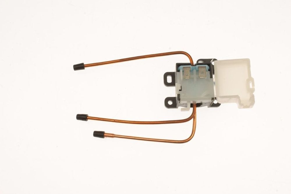 Переключающий клапан находится рядом с компрессором. К нему подключены 2 провода и 3 капиллярные трубки.