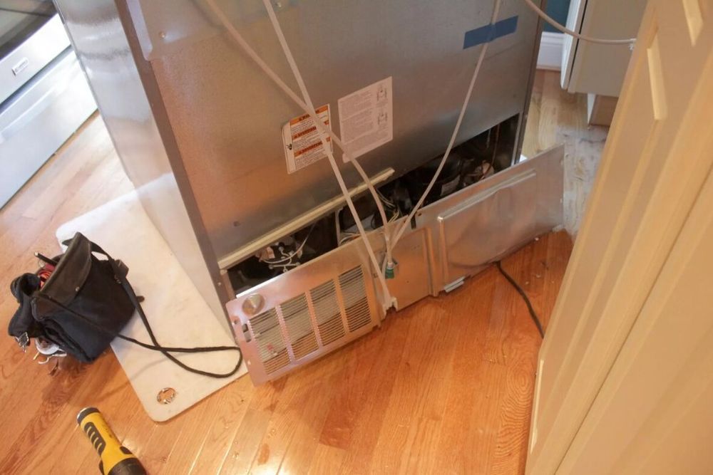 Причиной возникновения течи внутри холодильника может быть неправильная установка агрегата. В соответствии с требованиями производителя устанавливать холодильник нужно на безупречно ровную плоскость пола с выставлением по горизонтальному уровню. Даже малозаметная неровность поверхности пола приводит к перекосу корпуса, неплотному прилеганию дверцы и притоку теплых воздушных масс из комнаты в камеру. На внутренних стенках из-за этого скапливается конденсат, который циклично подмерзает и тает.