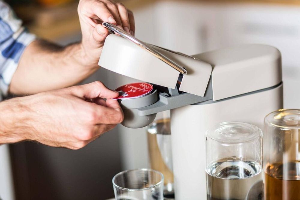 Капсульные кофемашины имеют особую конструкцию и работают по иному принципу, нежели рожковые и автоматические. Некоторое сходство у этого вида имеется с чалдовыми аппаратами, но вместо пакетов со спрессованным кофе в приемное устройство вставляются порционные капсулы. После того как оболочку проткнули иглы, на кофе подается горячая вода под давлением.