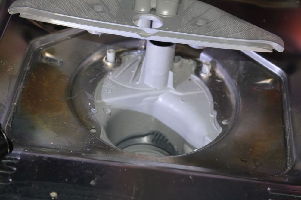 Фильтр внизу камеры задерживает частицы пищи и жир. Со временем на его поверхности образуется плотный налет, который удерживает воду с остатками моющего средства.