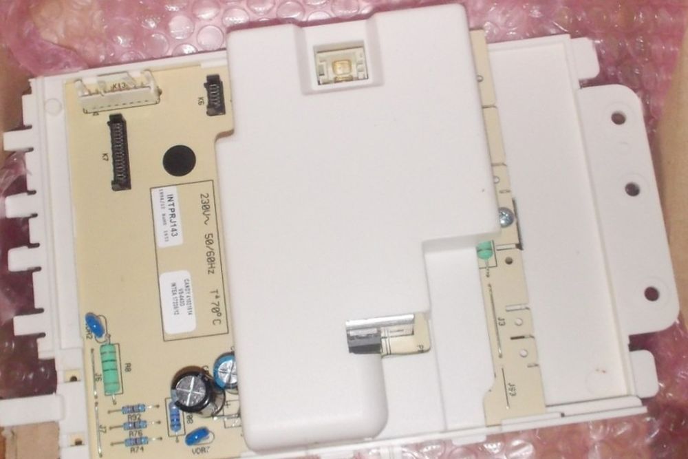 Электронный модуль координирует все этапы стирки. При сбое в программном обеспечении или повреждении платы логика работы нарушается, и стиралка зависает на одном из этапов. Иногда помогает простой сброс, потребуется обесточить агрегат на 10 минут.